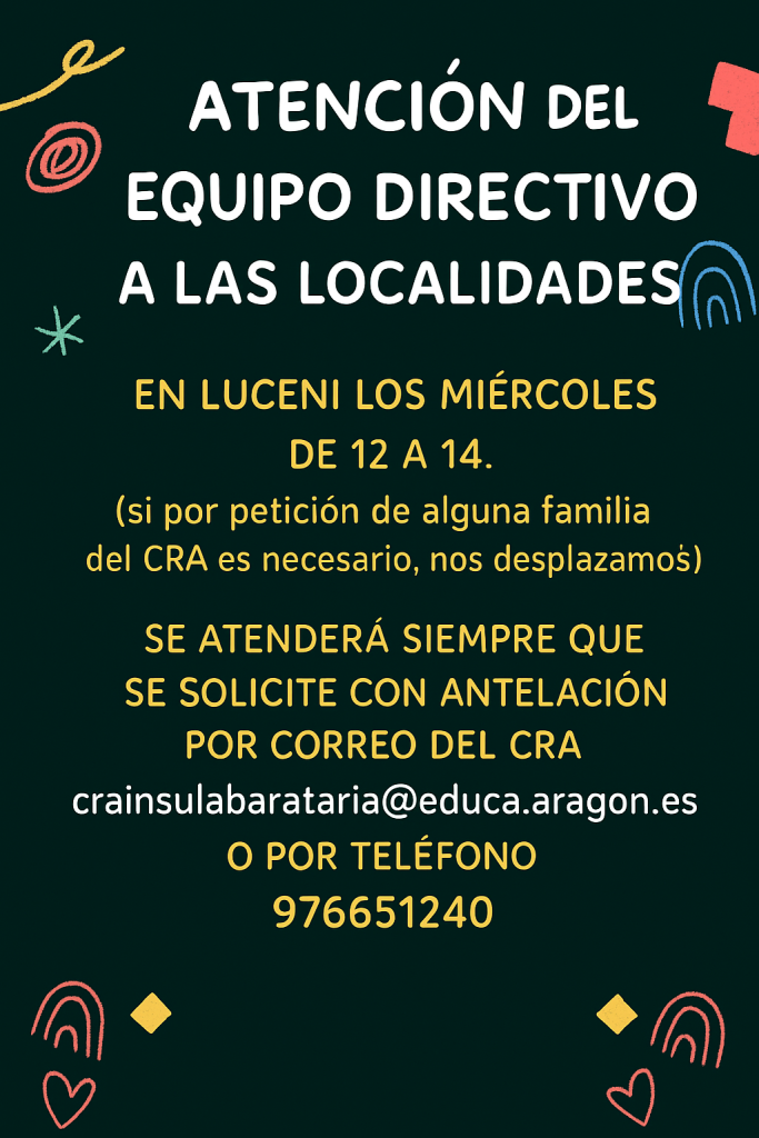 HORARIO DE ATENCIÓN A FAMILIAS DEL EQUIPO DIRECTIVO EN CADA UNA DE LAS LOCALIDADES: